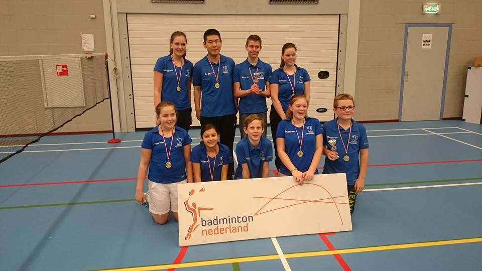 Afgelopen zaterdag waren de slotwedstrijden in Amersfoort voor de jeugdspelers van Badmintonclub Veenendaal. Na een spannend competitieseizoen waren jeugdteam 1 en 4 kampioen in de regio jeugdcompetitie geworden. Met het kampioenschap konden de twee teams het opnemen tegen de andere kampioenen uit de regio in de klasse onder de 19 en 14 jaar.