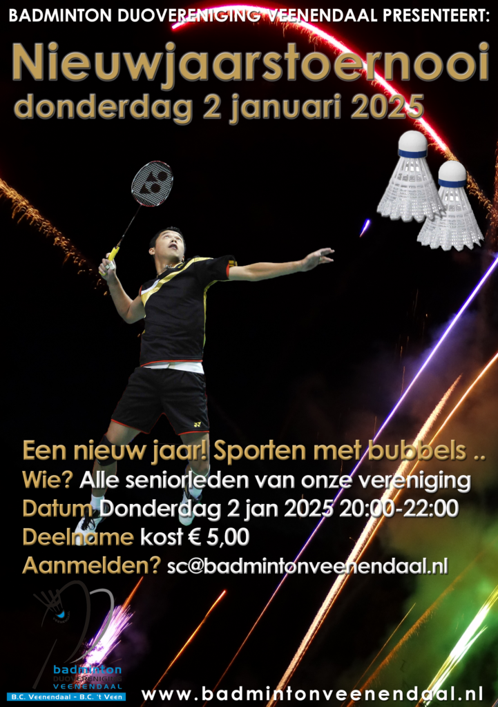 Uitnodiging Nieuwjaarstoernooi op donderdagavond 2 januari 2025